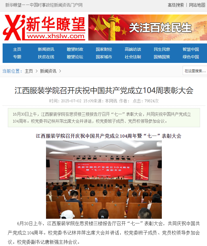新华瞭望:江西服装学院召开庆祝中国共产党成立104周表彰大会