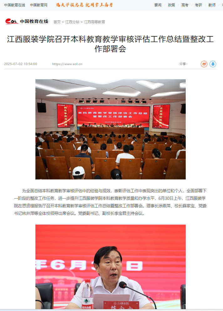 为全面总结本科教育教学审核评估中的经验与成效,表彰评估工作中表现突出的单位和个人,全面部署下一阶段的整改工作任务,进一步提升江西服装学院本科教育教学质量和办学水平,6月30日上午,江西服装学院在思贤楼报告厅召开本科教育教学审核评估工作总结暨整改工作部署会。理事长涂燕萍、校长薛家宝、党委书记林井萍等全体校领导出席会议。党委副书记、副校长李宝君主持会议。