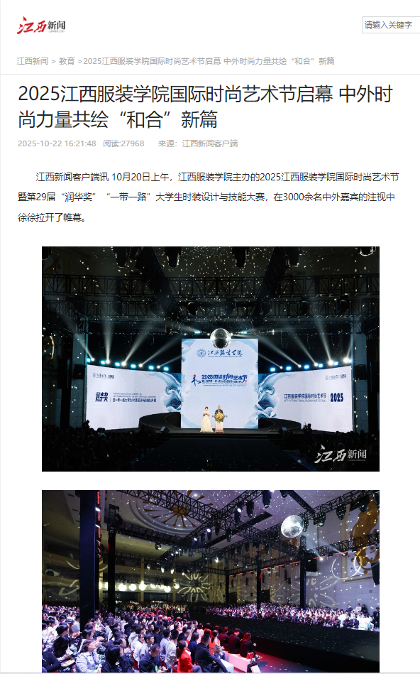 江西新闻:2025江西服装学院国际时尚艺术节启幕 中外时尚力量共绘“和合”新篇