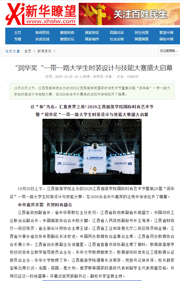 新华瞭望:以“和"为名,汇集世界之美!2025江西服装学院国际时尚艺术节暨“润华奖“一带一路大学生时装设计与技能大赛盛大启幕