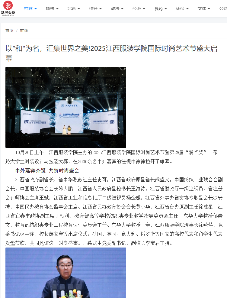 基层头条:以“和"为名,汇集世界之美!2025江西服装学院国际时尚艺术节暨“润华奖“一带一路大学生时装设计与技能大赛盛大启幕