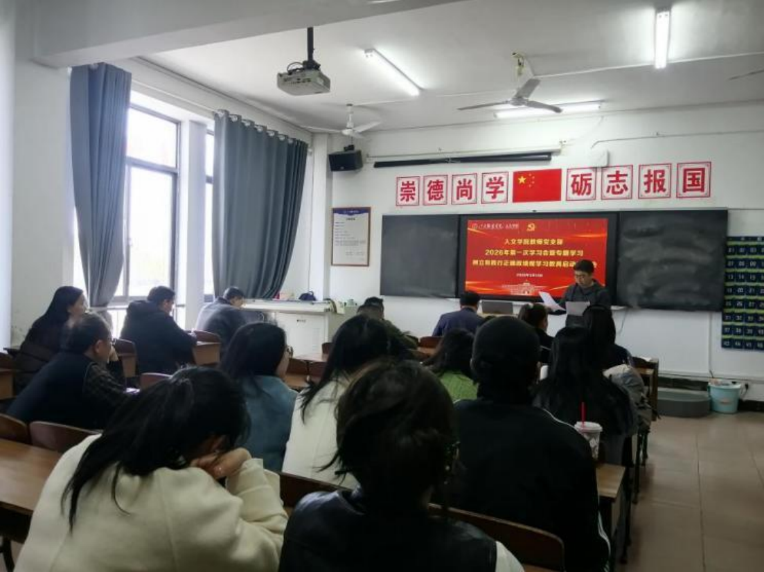 为深入学习贯彻习近平总书记关于树立和践行正确政绩观的重要论述精神,全面贯彻落实党中央《关于在全党开展树立和践行正确政绩观学习教育的通知》,2026年 3 月 13 日 13:00,人文学院教师党支部在主教学楼 135 教室组织召开了树立和践行正确政绩观学习教育启动部署会。会议由教师党支部书记王敏主持,本次会议共有三项议程。